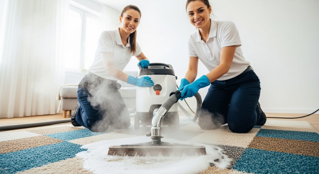• Utilizing hot water extraction (steam cleaning) or low-moisture methods to deeply clean carpet fibers.